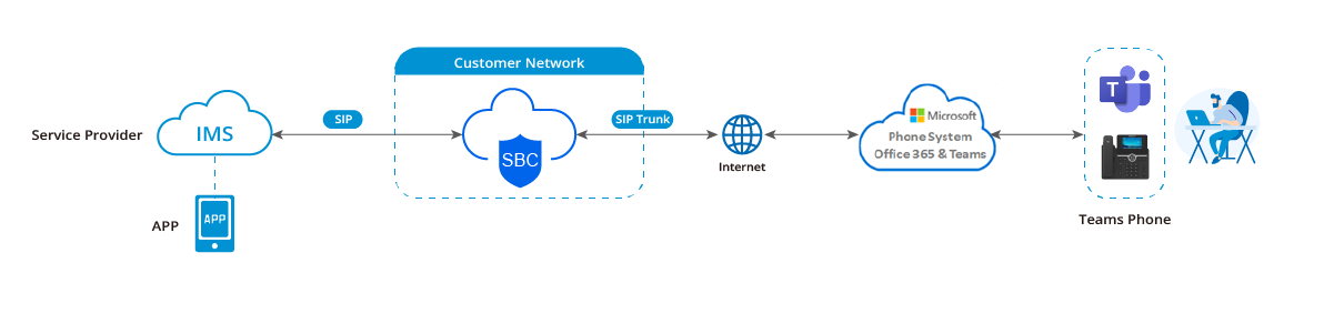 Сценарий 1: Teams+ Local Voice Trunks Многие транснациональные компании выбирают Microsoft Office 365 в качестве основного инструмента для внутренней коммуникации и совместной работы. Группе требуется подключение Teams к голосовым магистральным линиям местных операторов связи, что обеспечивает трансграничную голосовую связь. Это облегчает коммуникацию с филиалами и клиентами в разных странах, повышает эффективность и снижает затраты на международные звонки. Решение Разверните DINSTAR SBC локально в филиале, подключитесь к IMS местного оператора через SBC и одновременно интегрируйтесь с Microsoft Teams через SBC.