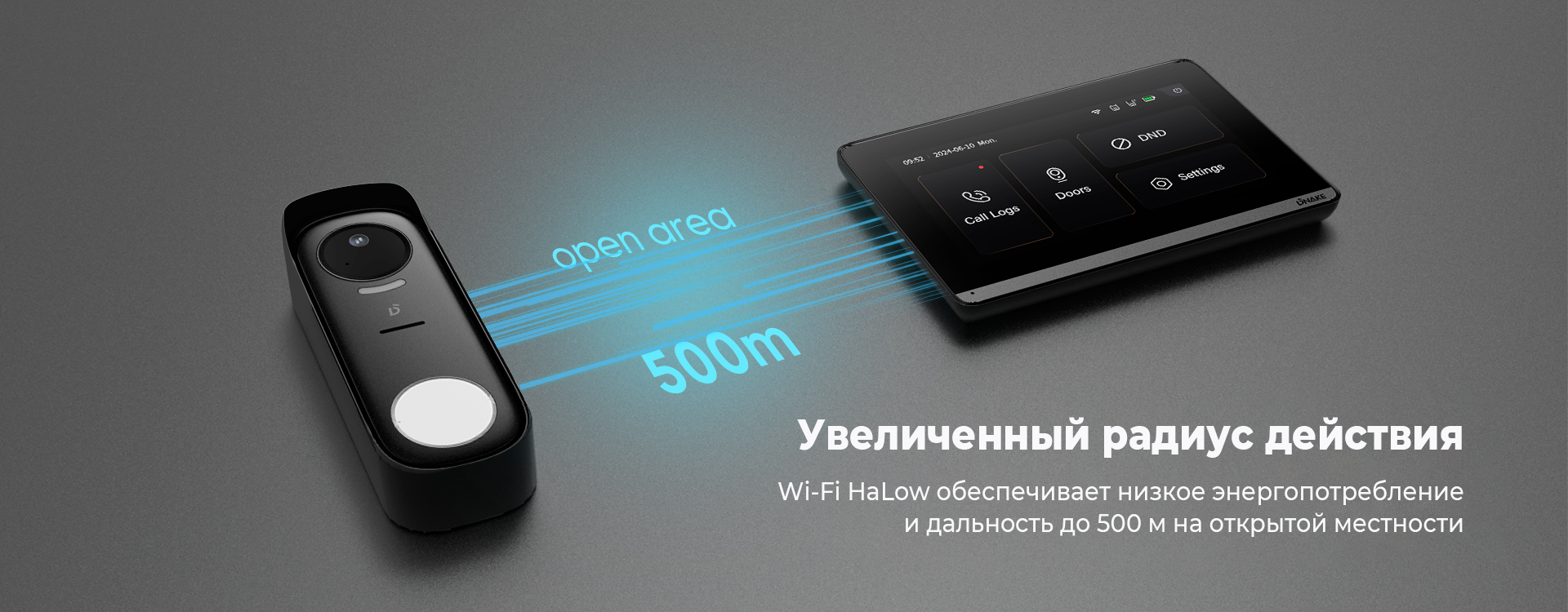 Что выделяется? Технология Wi-Fi HaLow, работающая на диапазоне 866 МГц, обеспечивает радиус передачи до 500 метров в открытых пространствах, что делает её идеальной для больших объектов. Эта инновационная система подключения также снижает энергопотребление, продлевая время работы от батареи дверного звонка.