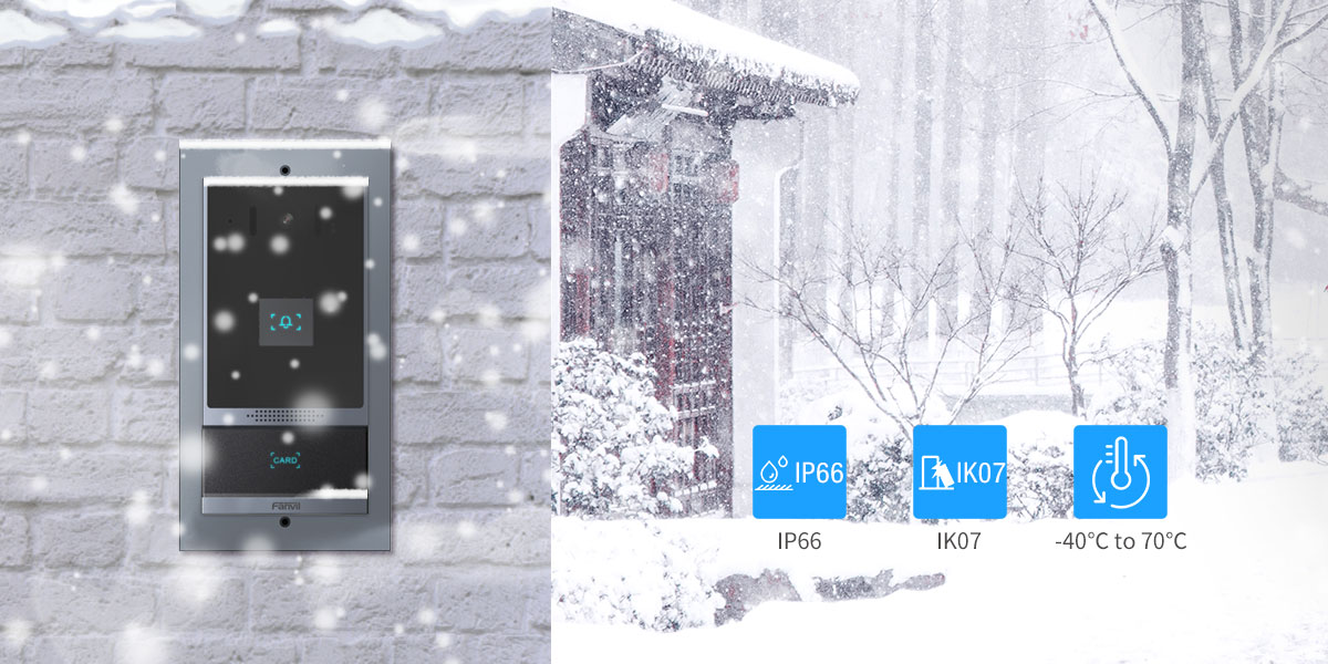 Благодаря степени водонепроницаемости и пыленепроницаемости IP66, стандарту защиты от столкновений IK07 и широкому диапазону температур от -40°C до 70°C, серия Fanvil i6 более долговечна для работы на открытом воздухе. Если кто-то намеренно повредит устройство, антитампер подаст сигнал тревоги и вызовет сигнал тревоги в центр управления одновременно. Основываясь на протоколе Transport Layer Security (TLS), серия i6 будет шифровать данные через Интернет для обеспечения информационной безопасности.