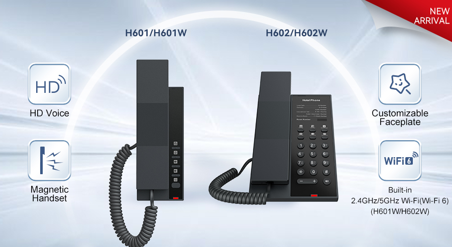 Шэньчжэнь, Китай, 19 июня 2025 г. — Компания Fanvil, мировой лидер в области аудио- и видеоустройств IoT, рада объявить о выпуске гостиничных IP-телефонов серии H601/H602, включая модели H601W и H602W с поддержкой Wi-Fi. Эта серия, специально разработанная для гостиничного и коммерческого секторов, сочетает в себе компактный дизайн, качество передачи голоса в формате HD и настраиваемые функции, предлагая более интеллектуальное и гибкое решение для общения с гостями.