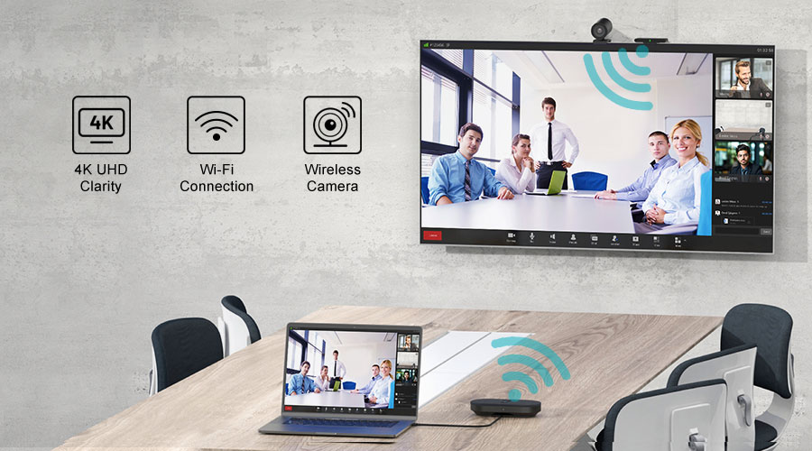 Отличительной особенностью CA400 является его беспроводная связь. Поскольку MS10 и RC10 используют исключительно Wi-Fi для передачи сигнала, нет необходимости в прокладке дополнительных кабелей или загрузке программного обеспечения, что обеспечивает аккуратную и оптимизированную обстановку в офисе. MS10 обеспечивает удобство plug-and-play, требуя всего лишь легкого нажатия для бесшовной проекции экрана в формате 4K.