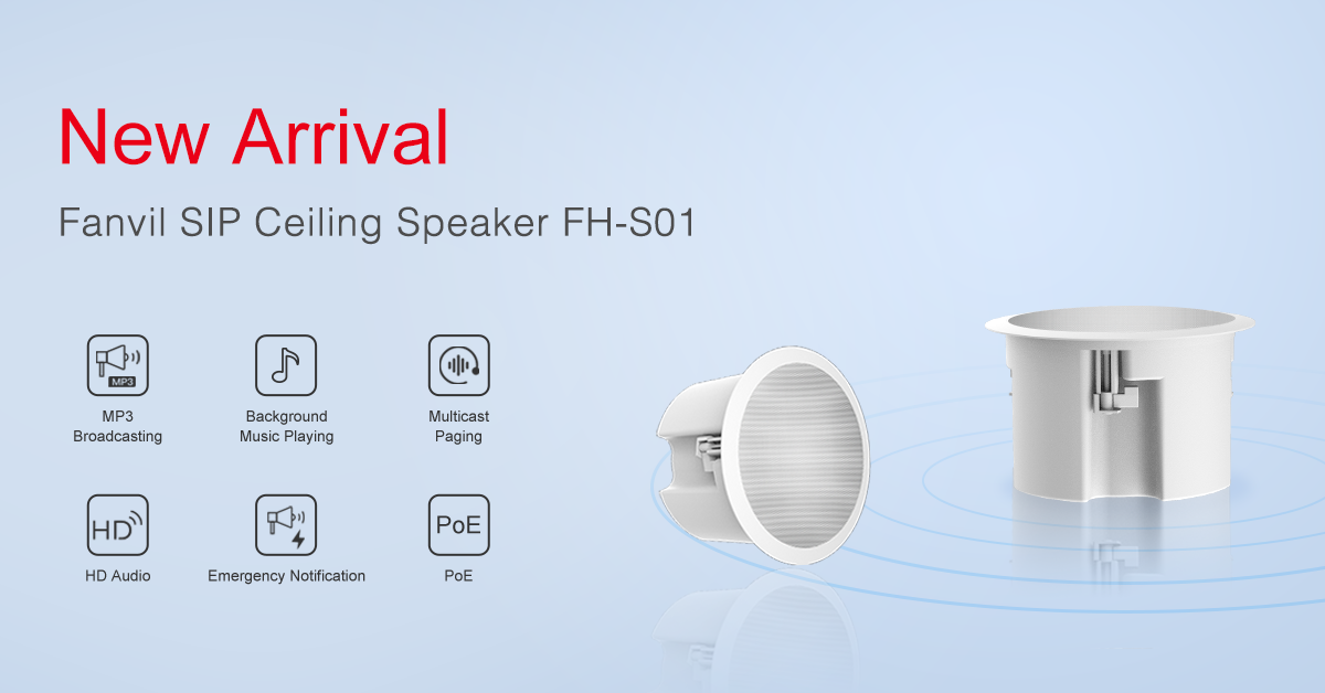 Fanvil FH-S01 поддерживает технологию plug-and-play при подключении к PoE и интегрирован с коаксиальным драйвером, встроенным цифровым сигнальным процессором и цифровым усилителем, что упрощает эксплуатацию и простую настройку для пользователей.
